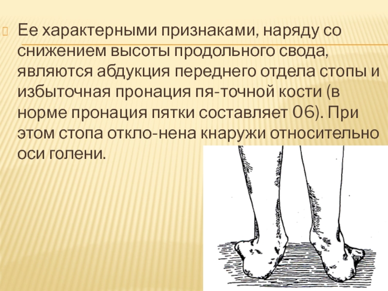 Слайд 12Ее характерными признаками, наряду со снижением высоты продольного свода, являются