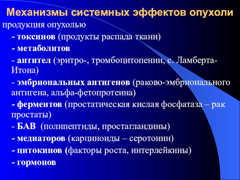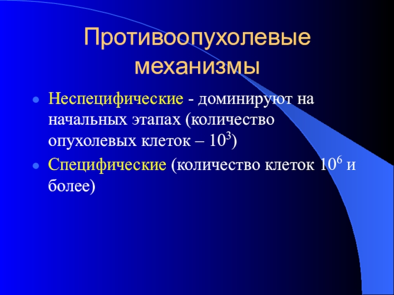 Неспецифические - доминируют на начальных этапах (количество опухолевых клеток