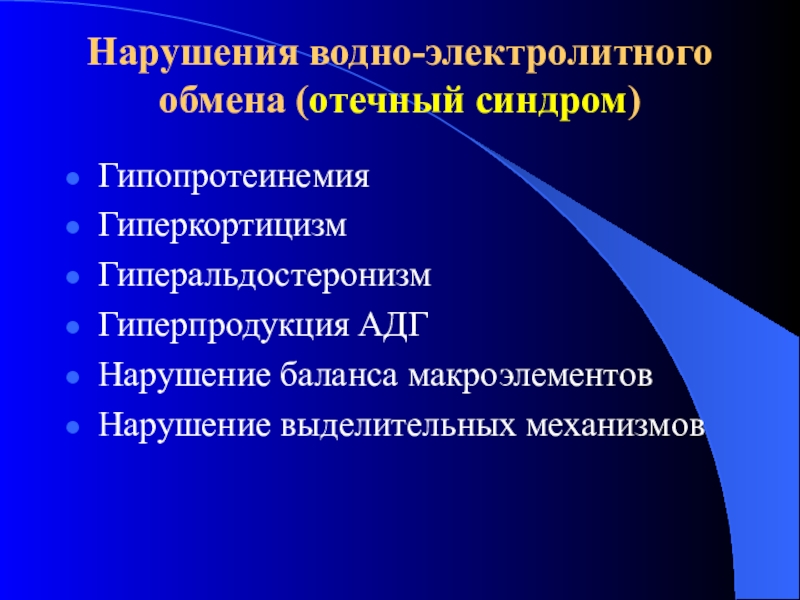 Слайд 74Нарушения водно-электролитного обмена (отечный синдром)