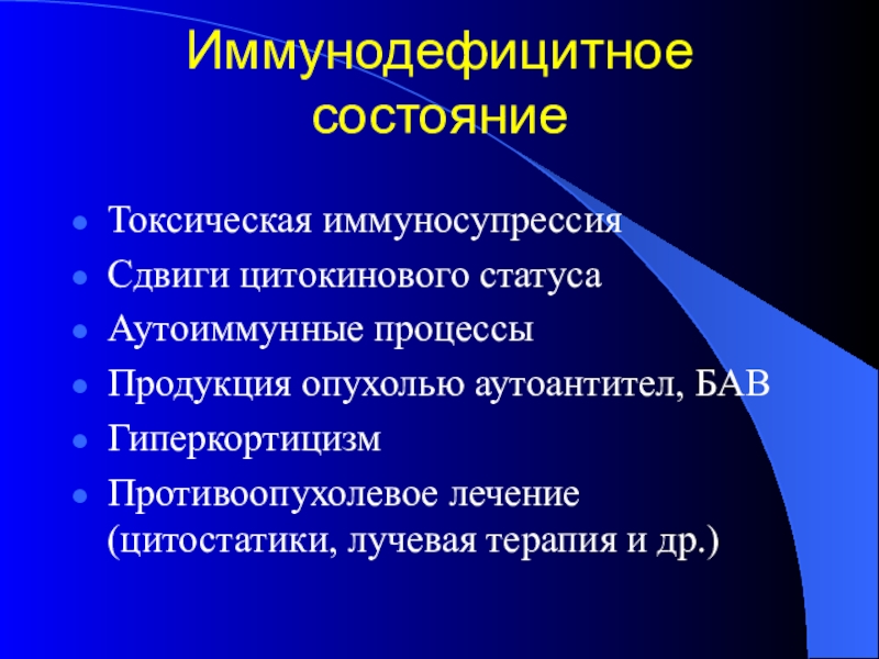 Противоопухолевое лечение (цитостатики, лучевая терапия и др.)