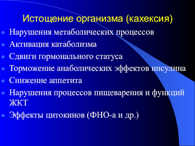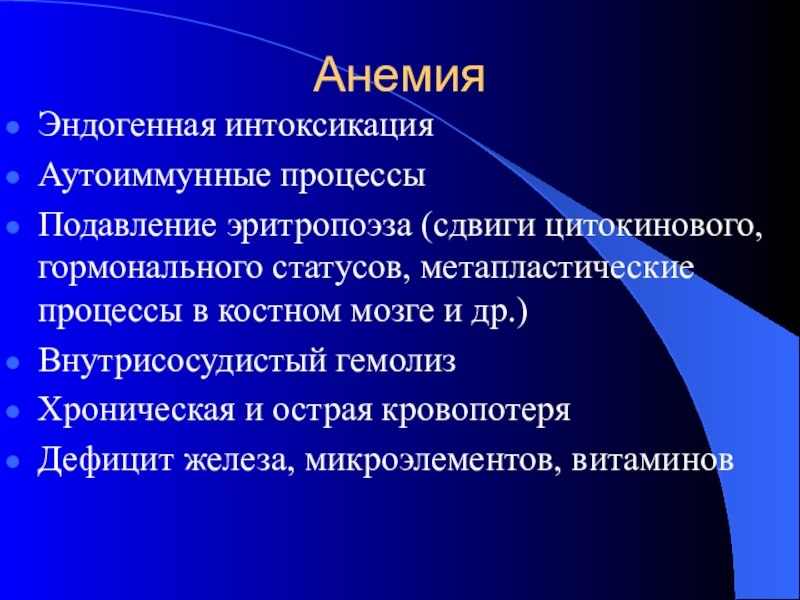 Подавление эритропоэза (сдвиги цитокинового, гормонального статусов, метапластические процессы