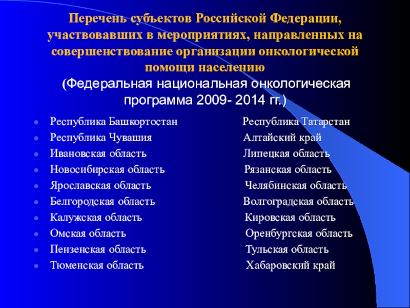 (Федеральная национальная онкологическая программа 2009- 2014 гг.)