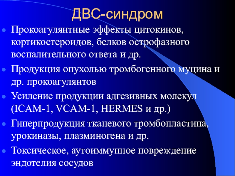 Прокоагулянтные эффекты цитокинов, кортикостероидов, белков острофазного воспалительного ответа и др.