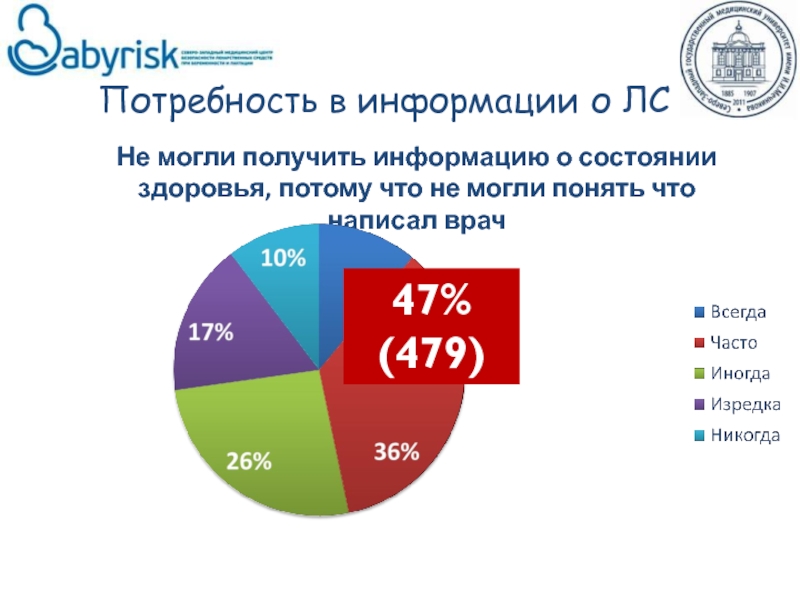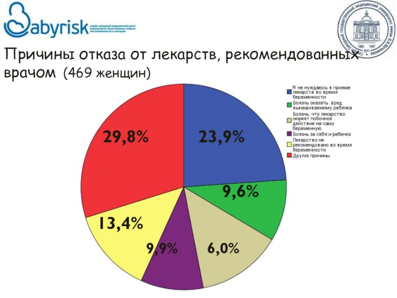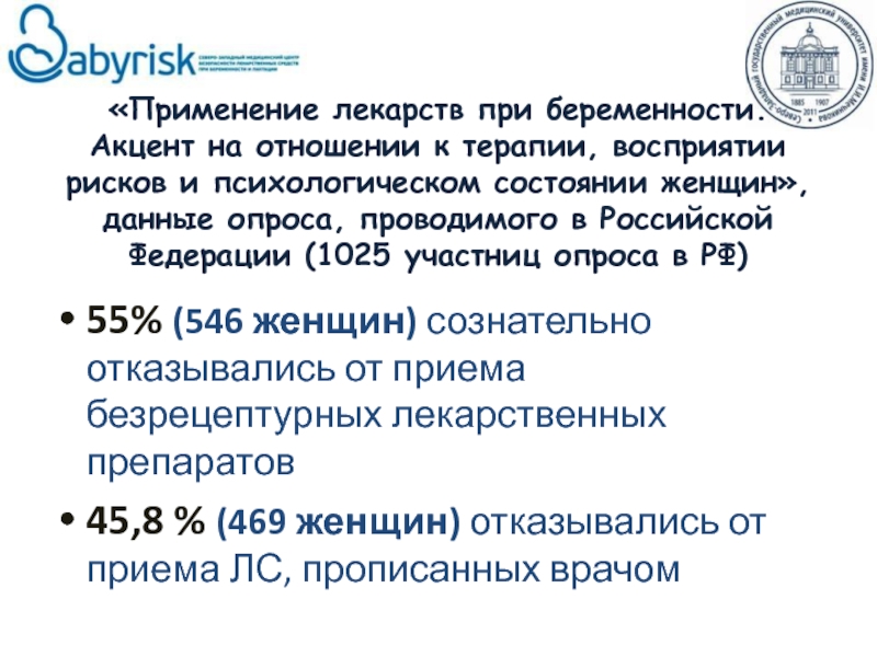 45,8 % (469 женщин) отказывались от приема ЛС, прописанных врачом