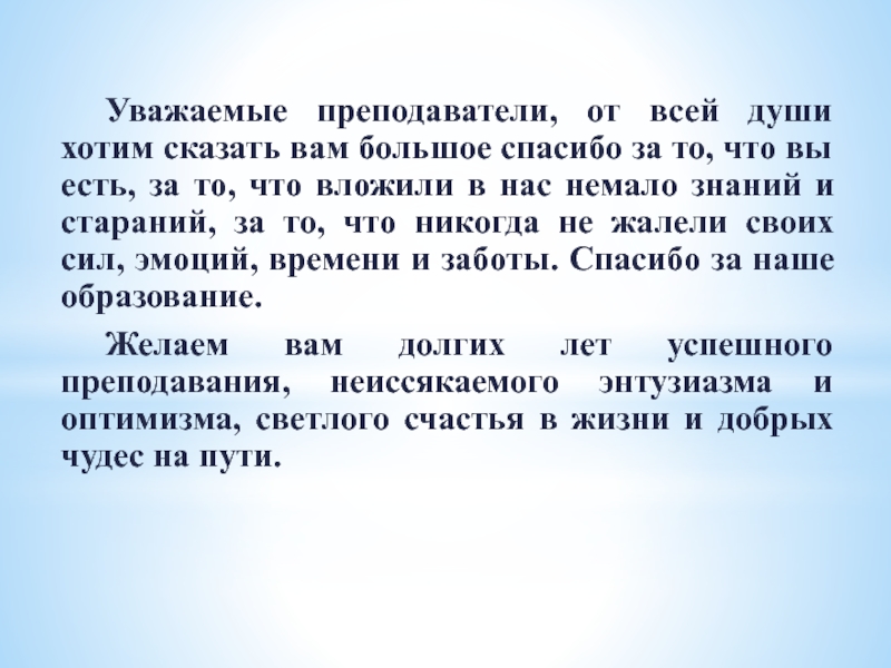 Уважаемые преподаватели, от всей души хотим сказать вам большое спасибо