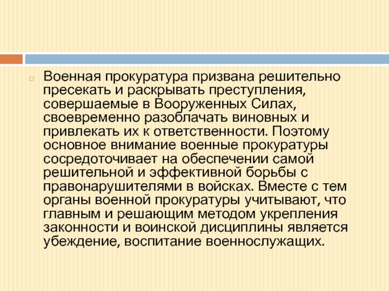 Слайд 12Военная прокуратура призвана решительно пресекать и раскрывать преступления, совершаемые в