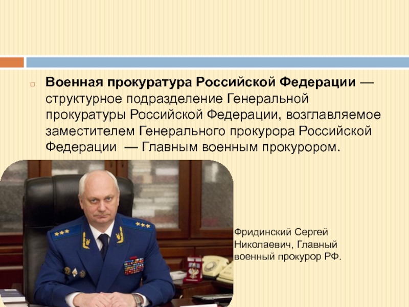 Слайд 2Фридинский Сергей Николаевич, Главный военный прокурор РФ.