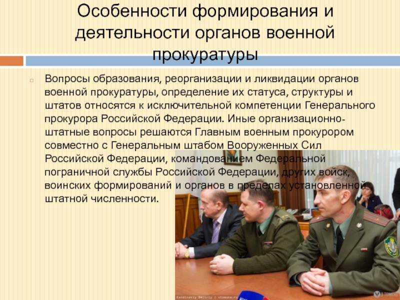 Слайд 7Особенности формирования и деятельности органов военной прокуратуры