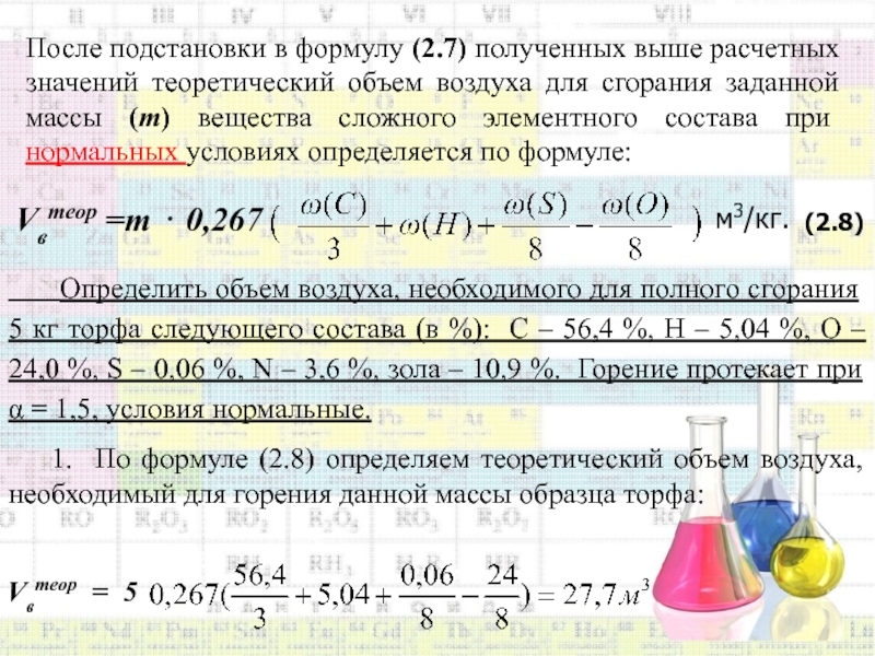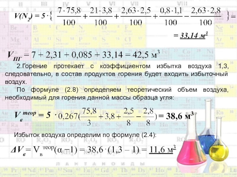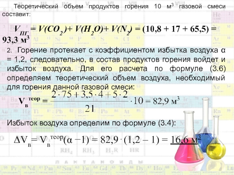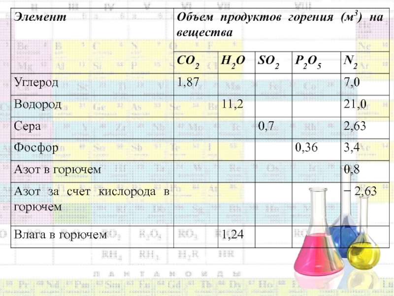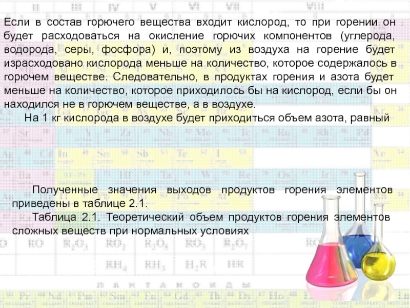 Слайд 50Используя данные таблицы 2.1., можно вычислить объем продуктов горения любого