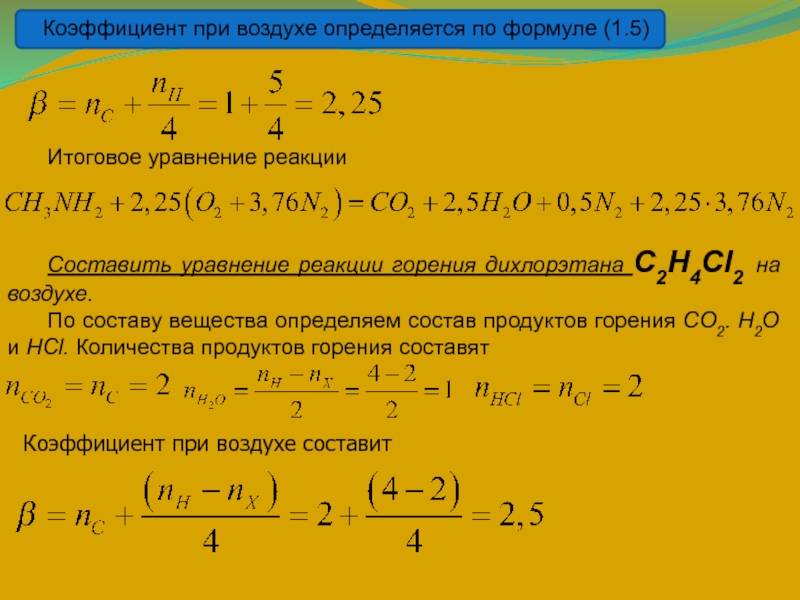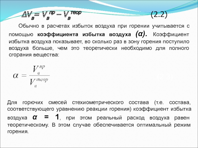 Слайд 14Коэффициент при воздухе определяется по формуле (1.5)