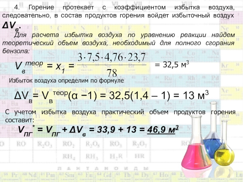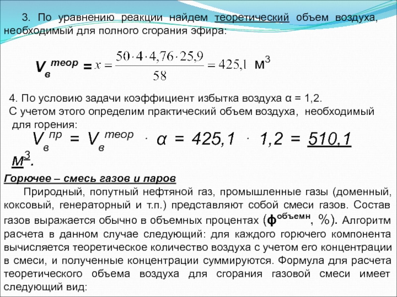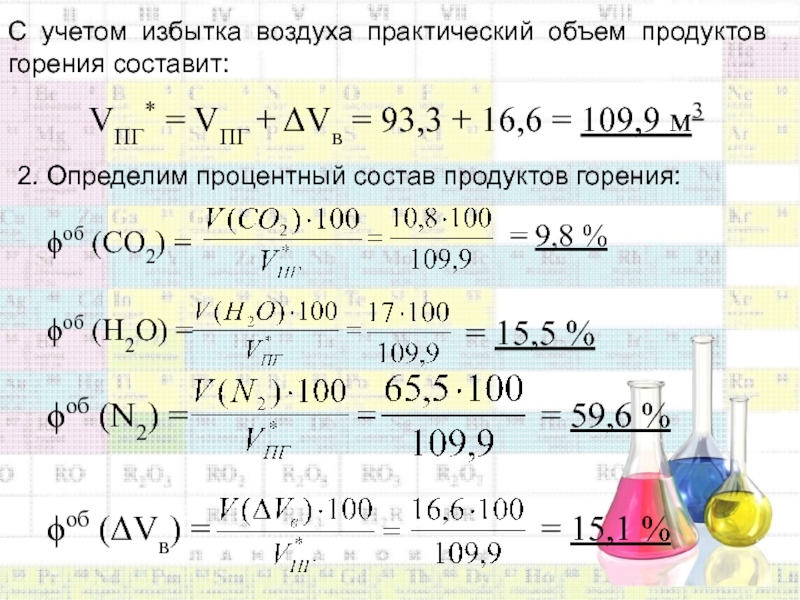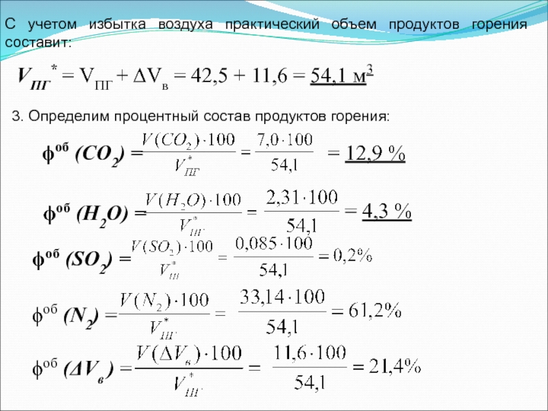 Слайд 53С учетом избытка воздуха практический объем продуктов горения составит: