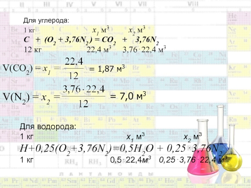 Н+0,25(О2+3,76N2)=0,5Н2О + 0,253,76N2