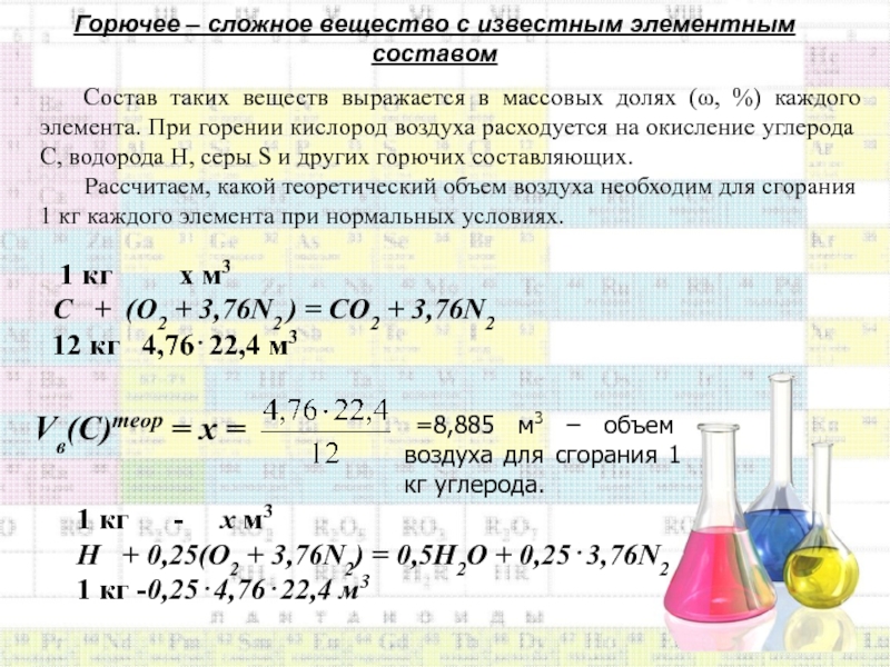 Таблица 2.1. Теоретический объем продуктов горения элементов сложных веществ при нормальных условиях