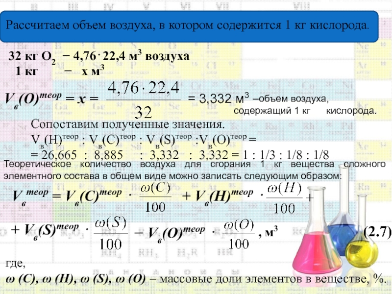 На 1 кг кислорода в воздухе будет приходиться объем азота, равный