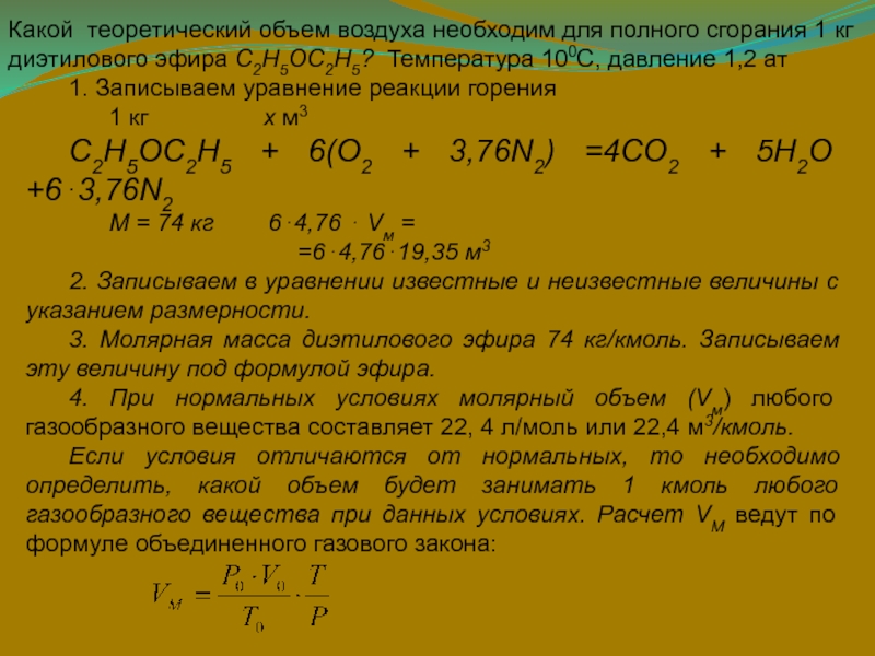 Определить объем и процентный состав продуктов горения 5 кг каменного