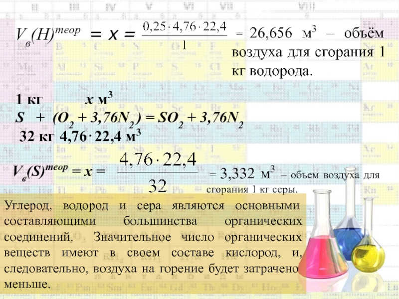 S + (О2 + 3,76N2) = SО2 + 3,76N2