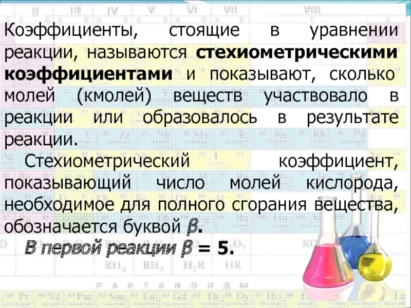 Слайд 8Коэффициенты, стоящие в уравнении реакции, называются стехиометрическими коэффициентами и показывают,