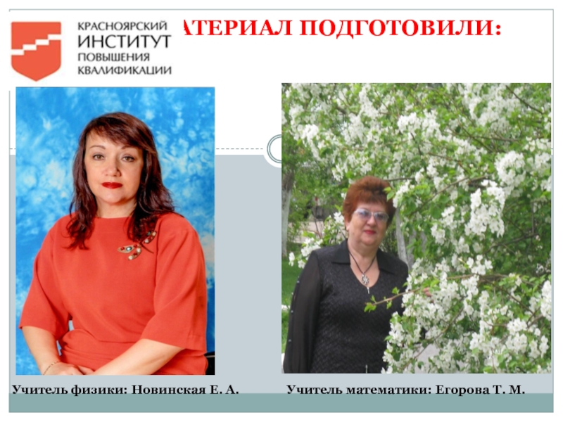 Материал подготовили:Учитель физики: Новинская Е. А. Учитель математики: Егорова Т. М.