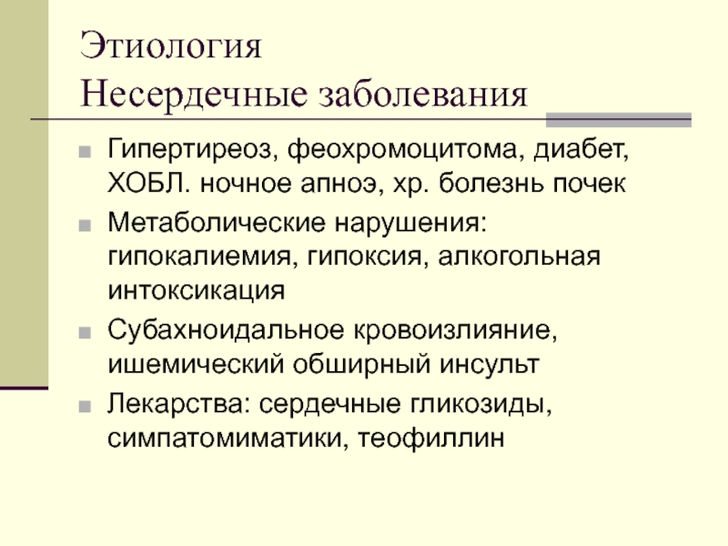 Гипертиреоз, феохромоцитома, диабет, ХОБЛ. ночное апноэ, хр. болезнь почек
