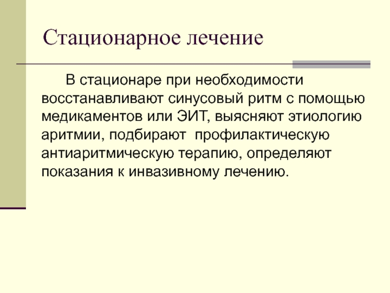 медикаментов или ЭИТ, выясняют этиологию аритмии, подбирают профилактическую антиаритмическую терапию,