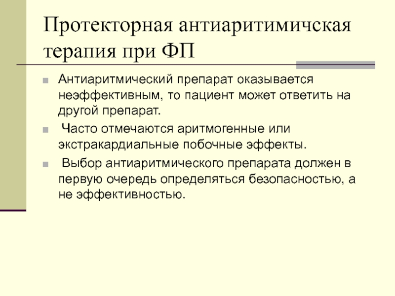Слайд 24Протекторная антиаритимичская терапия при ФП