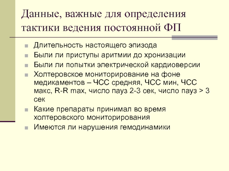Данные, важные для определения тактики ведения пароксизмальной ФП