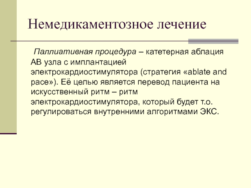 электрокардиостимулятора (стратегия «ablate and pace»). Её целью является перевод пациента