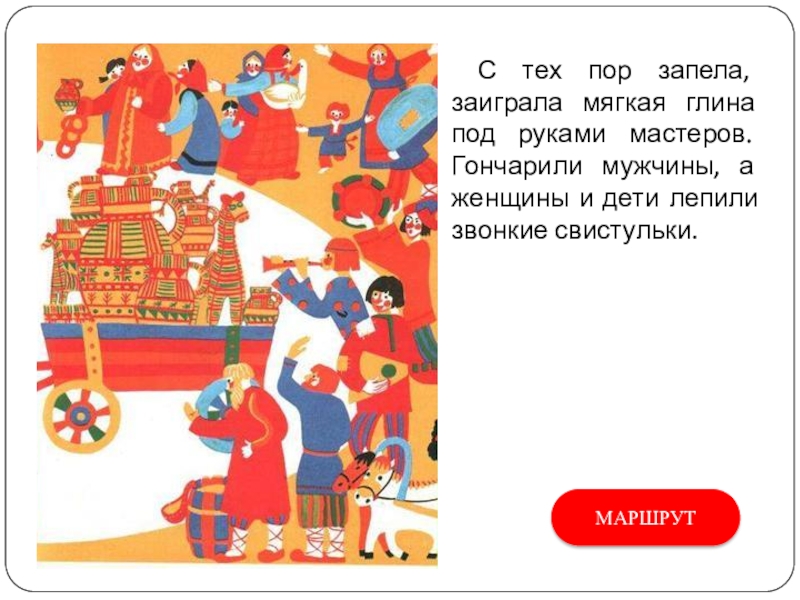 Слайд 11С тех пор запела, заиграла мягкая глина под руками мастеров.