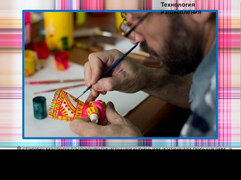 Слайд 15В старину мастера расписывали игрушки куриными и утиными перышками, а