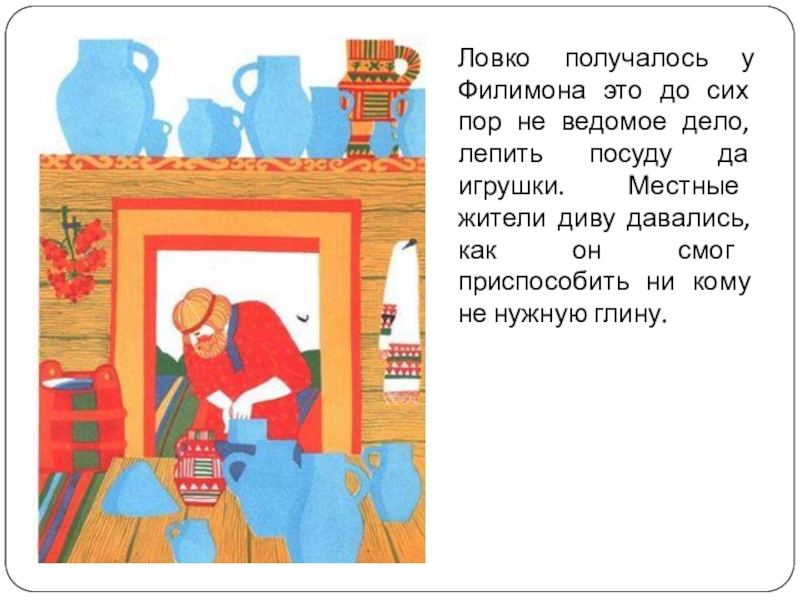 места гончар Филимон. Он обнаружил залежи отличной глины и начал