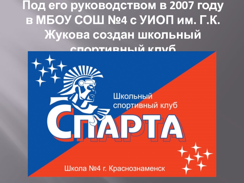 Руководитель школьного спортивного клуба «Спарта»,