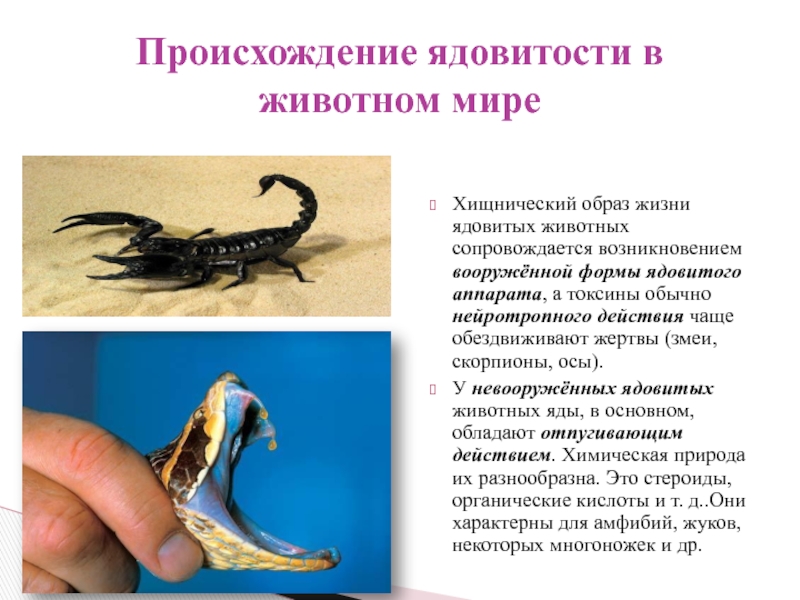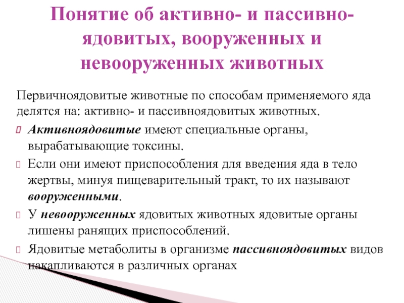 Понятие об активно- и пассивно-ядовитых, вооруженных и невооруженных животных