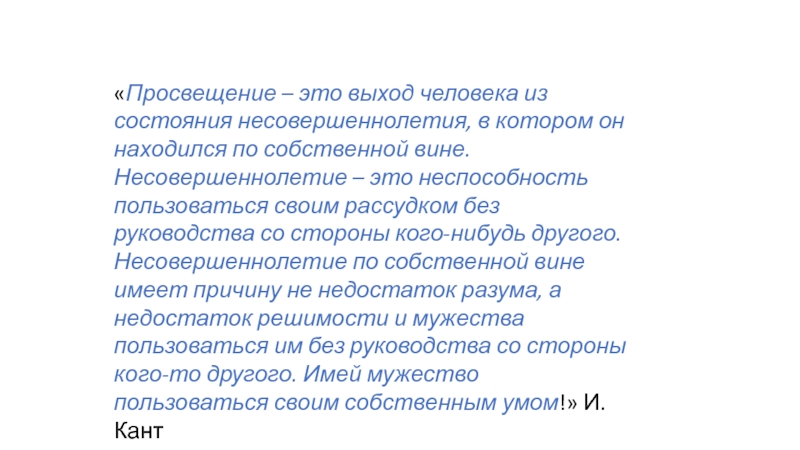 Слайд 2«Просвещение – это выход человека из состояния несовершеннолетия, в котором