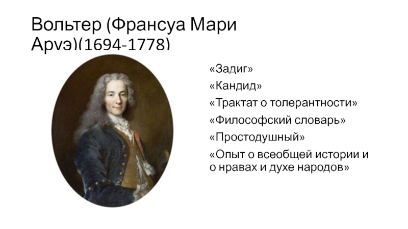 Слайд 13Вольтер (Франсуа Мари Аруэ)(1694-1778)