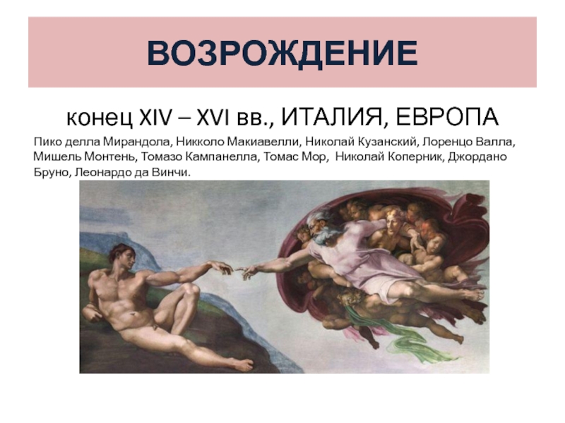Пико делла Мирандола, Лоренцо Валла , Данте Алигьери, Петрарка, Эразм Роттердамский, Томмазо Кампанелла, Шекспир, Сервантес