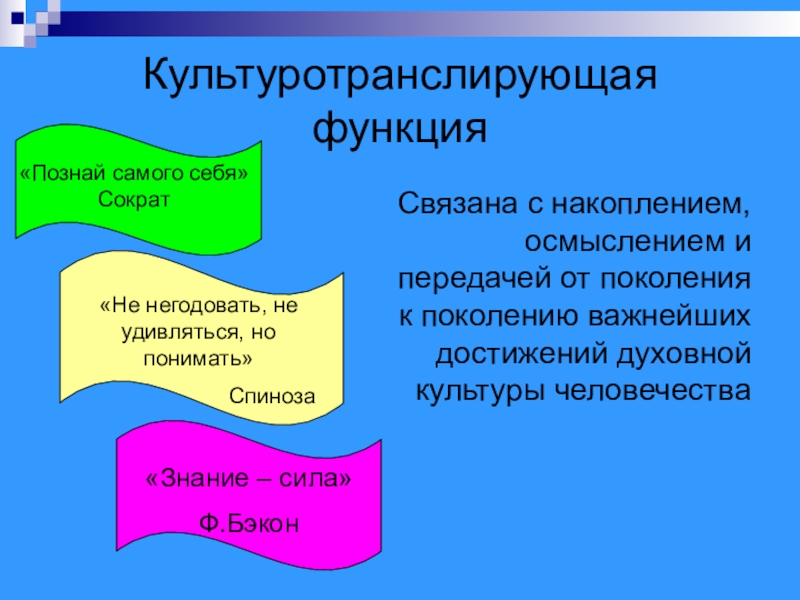 Слайд 44Культуротранслирующая функция