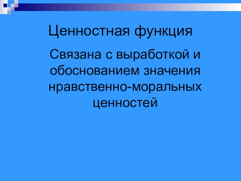 Связана с выработкой и обоснованием значения нравственно-моральных ценностей