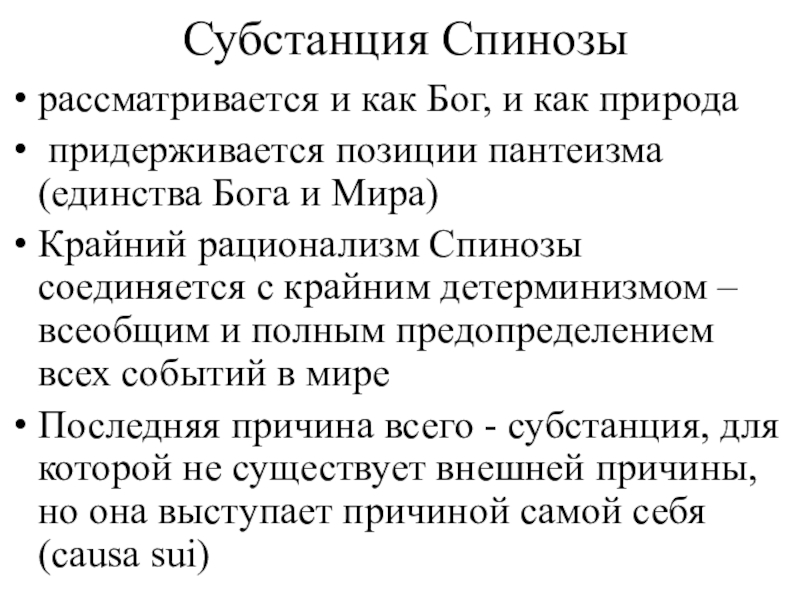 Слайд 25 Субстанция Спинозы