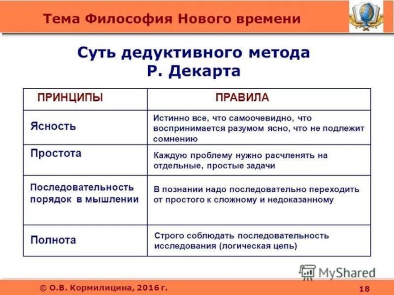 Р. Декарт: « Я мыслю, следовательно, я существую »