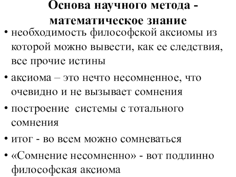Слайд 8 Основа научного метода -математическое знание
