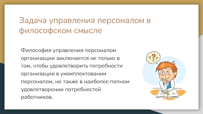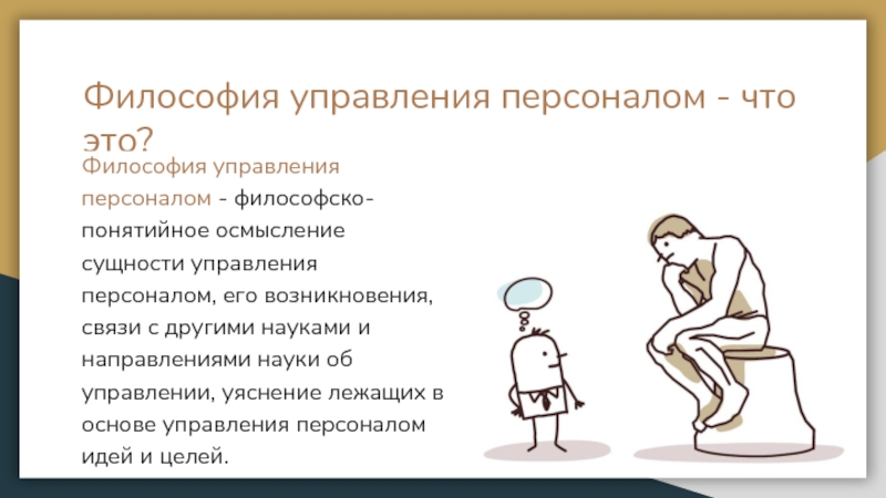 Слайд 4Сущность философии управления персоналом организации заключается в том, что работники