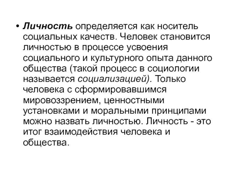 Слайд 10Личность определяется как носитель социальных качеств. Человек становится личностью в процессе