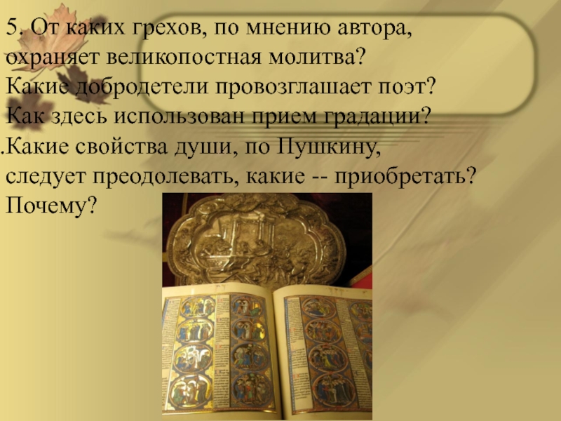 Слайд 17Сопоставьте пушкинское стихотворение с текстом молитвы: