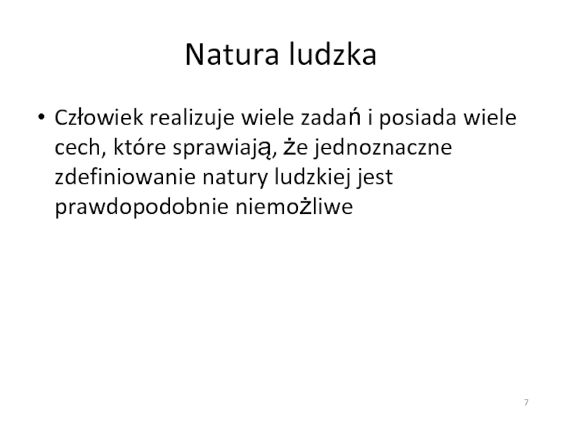 Natura ludzkaCzłowiek realizuje wiele zadań i posiada wiele cech, które sprawiają, że jednoznaczne zdefiniowanie natury ludzkiej jest