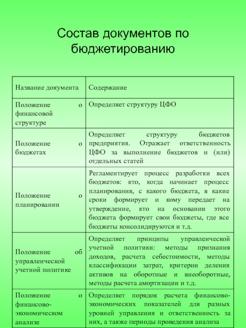каждого конкретного предприятия бюджет будет индивидуален. Сам процесс бюджетирования предусматривает
