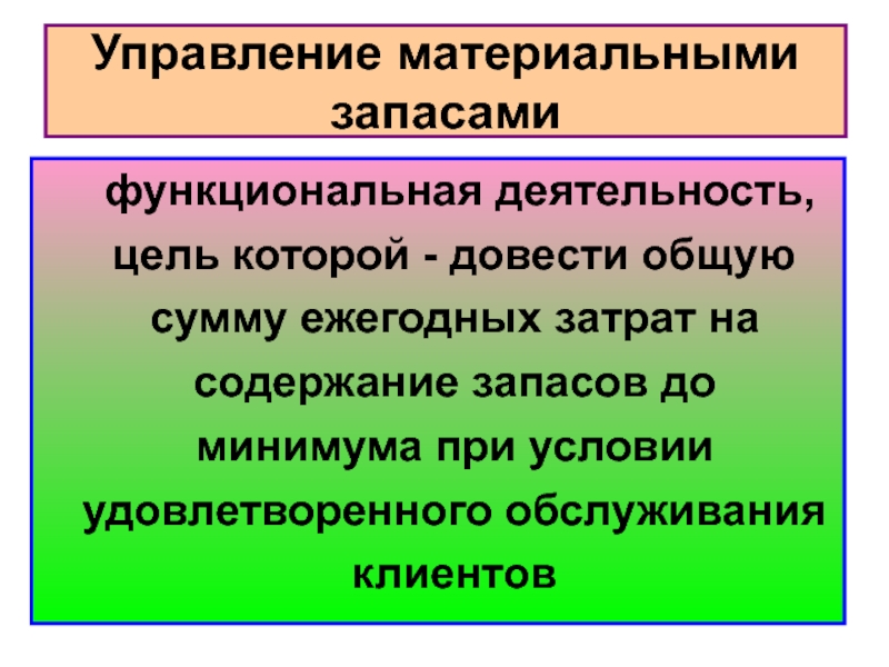 сумму ежегодных затрат на содержание запасов до минимума при условии