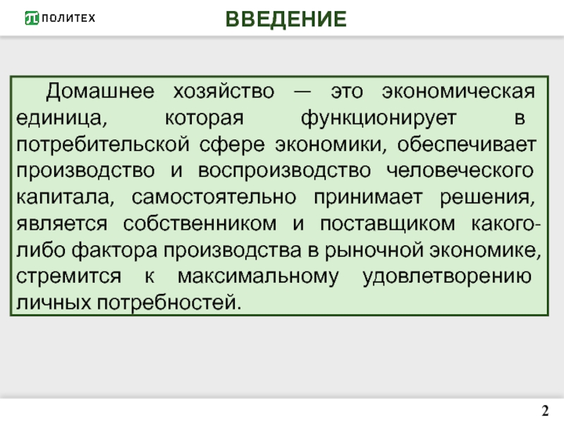 - Домашние хозяйства могут быть не только конечными потребителями различных благ, но и их производителями.