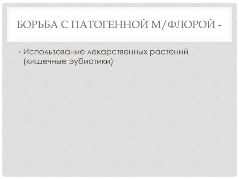 Борьба с патогенной м/флорой -Использование лекарственных растений (кишечные эубиотики)