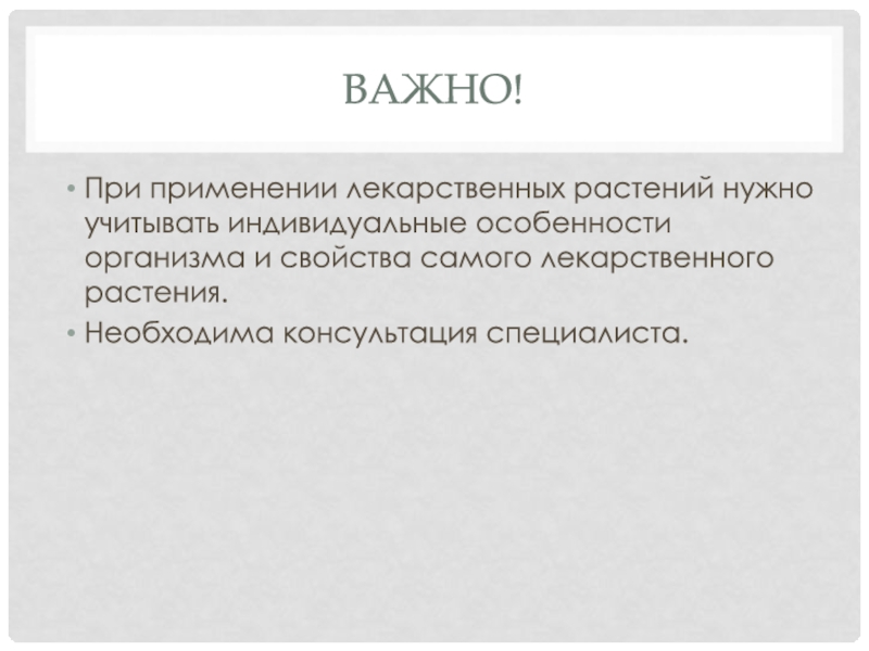 При применении лекарственных растений нужно учитывать индивидуальные особенности организма и