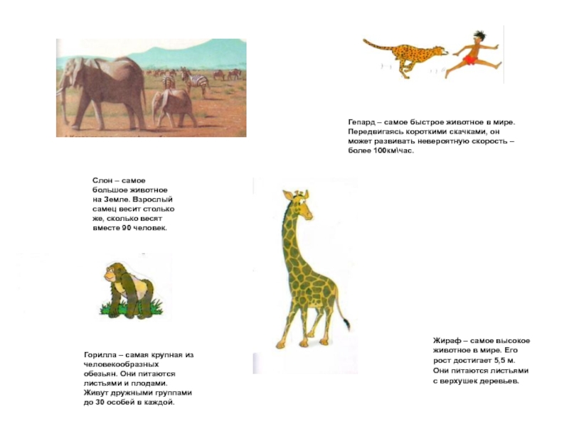 Гепард – самое быстрое животное в мире. Передвигаясь короткими скачками, он может развивать невероятную скорость – более 100км\час.